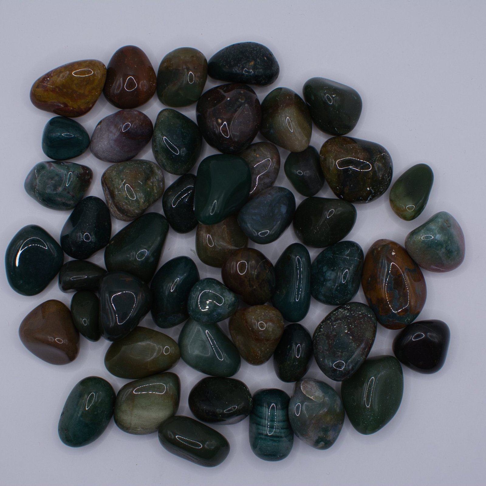 Heliotrop, eller Blodsten som den också kallas, är en av de mest kraftfulla och jordande stenarna som finns. Dess namn kommer från grekiska helios, sol och tropos, vändning. Med sin djupgröna bas och de distinkta röda stänken av järnoxid, har den historiskt sett betraktats som en talisman för krigare och atleter.