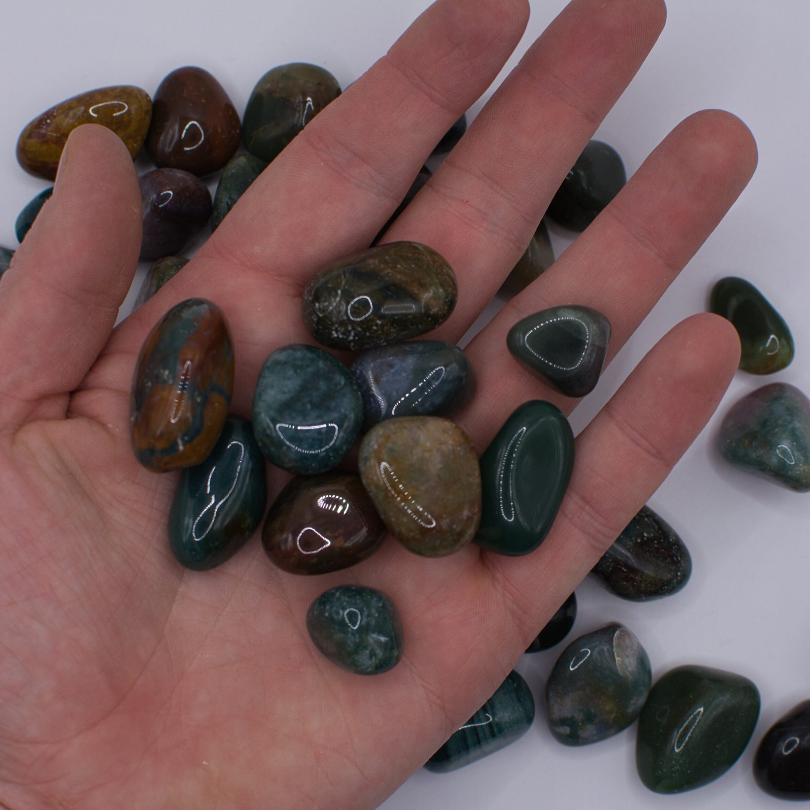 XXL – Display Beacon Vikt: 51–80g | Storlek: ca 5–6,5 cm+ Våra största trumlade stenar. En mäktig ledstjärna som drar blickarna till sig. Denna storlek gör sig bäst som blickfång i hemmet.