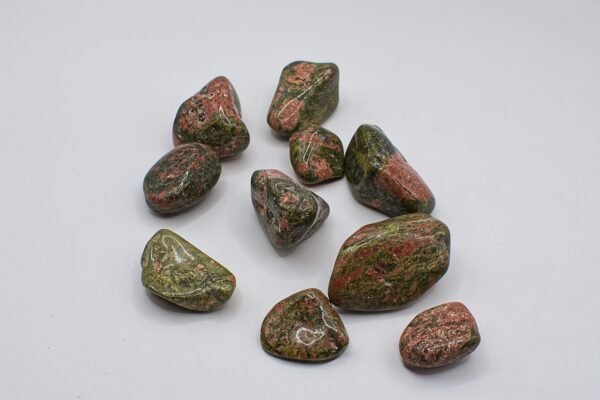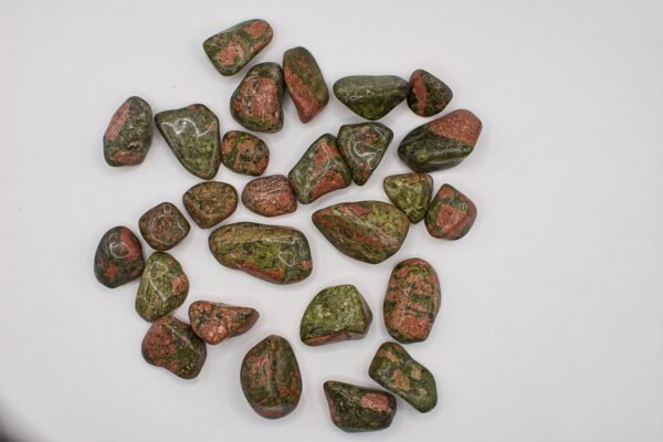 Unakit med sina vackra gröna och persikofärgade toner är en mjuk healing-sten. Den balanserar känslor och stöder emotionell healing.